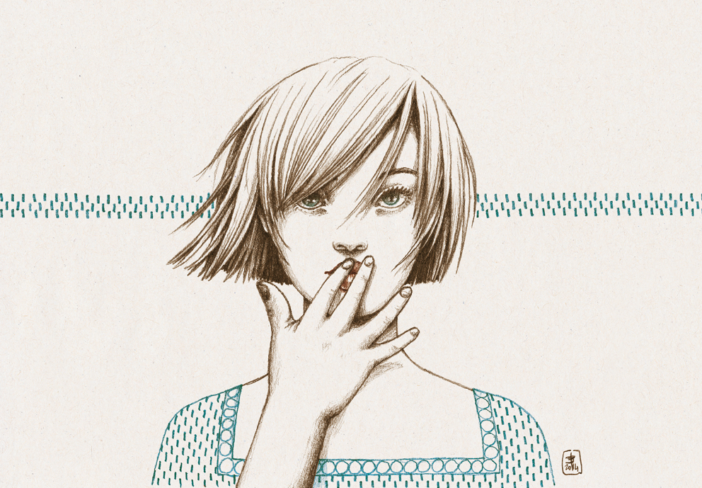 - Encre de chine sur papier puis mise en couleurs numérique.